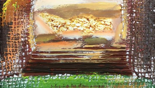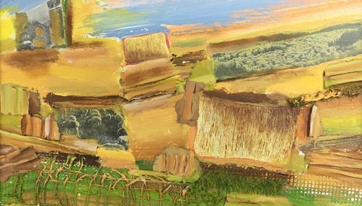 Landscape - (Castle on the Hill) Acrylic & collage on canvas : November 2019 / 41 x 32 x 6 cm (framed) SOLD